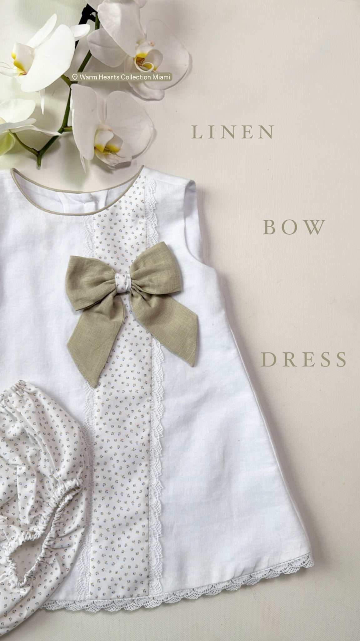 Linen and cotton dress with a piping trim and a detail bow featuring a dainty print and lace detailing