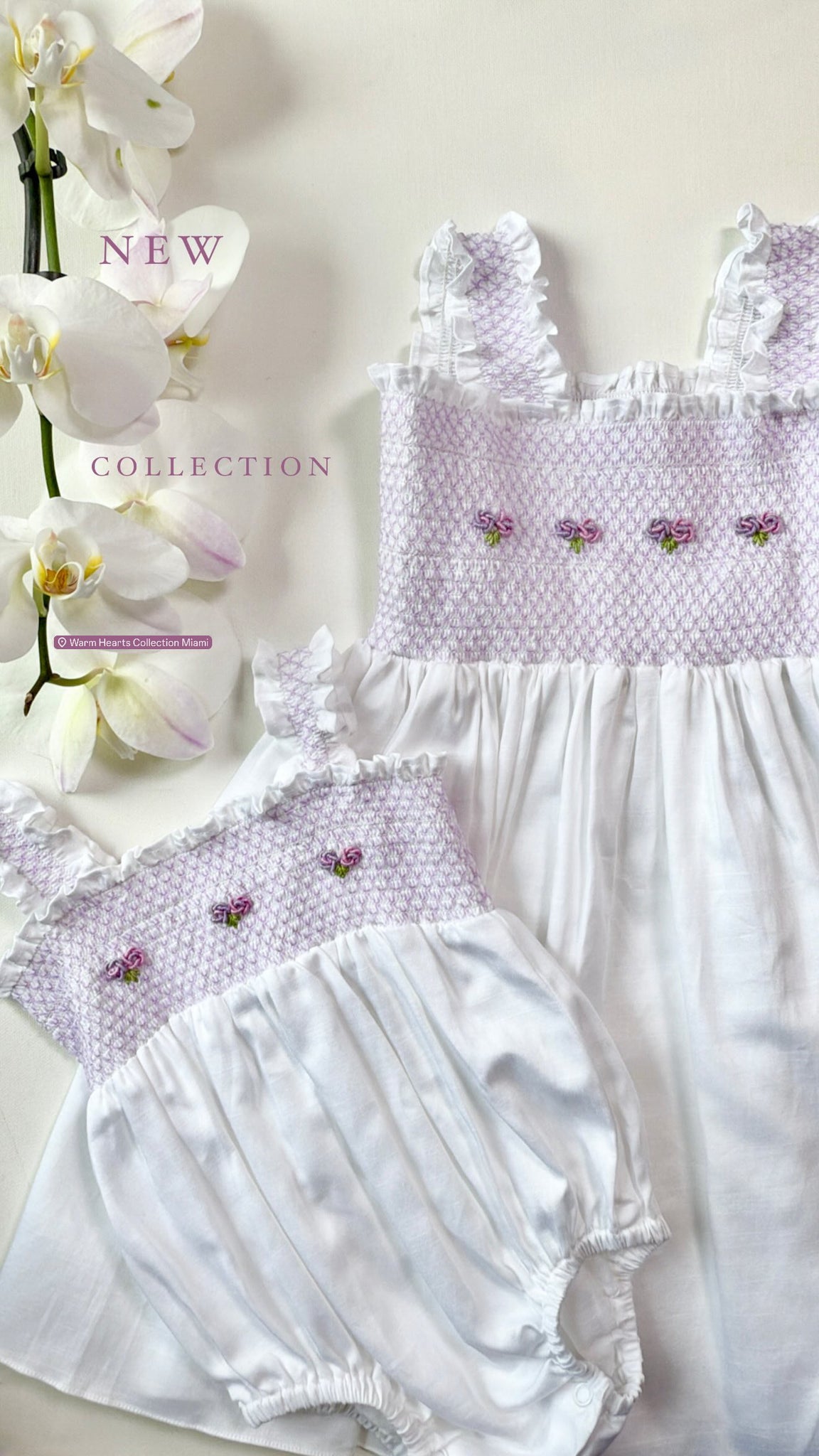 Dainty smocked lilac dress with embroidery detailing's.