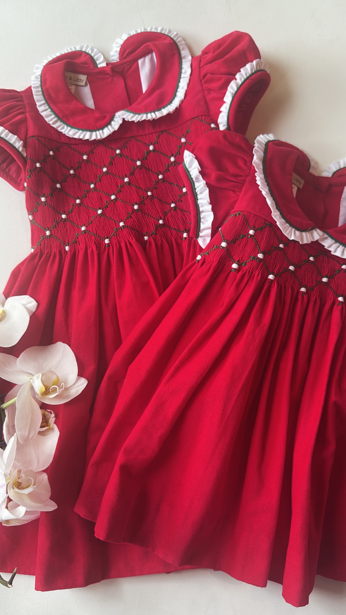 RED SMOCKED EMROIDERY DRESS